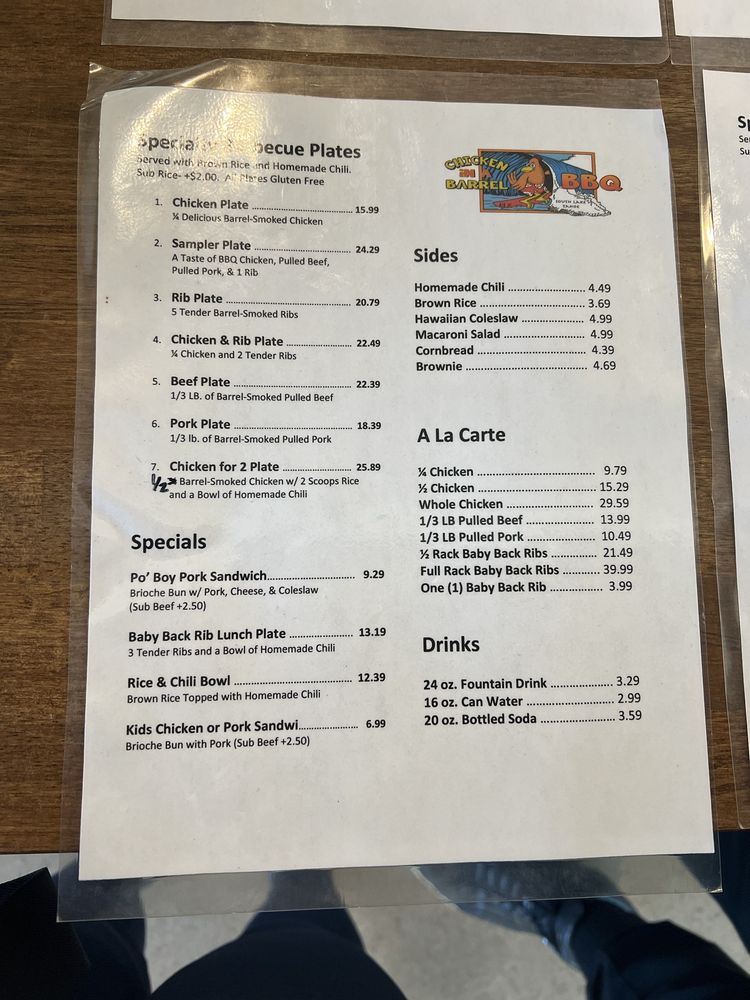 Chicken In A Barrel BBQ- South Lake Tahoe Menu (Update 2025)
